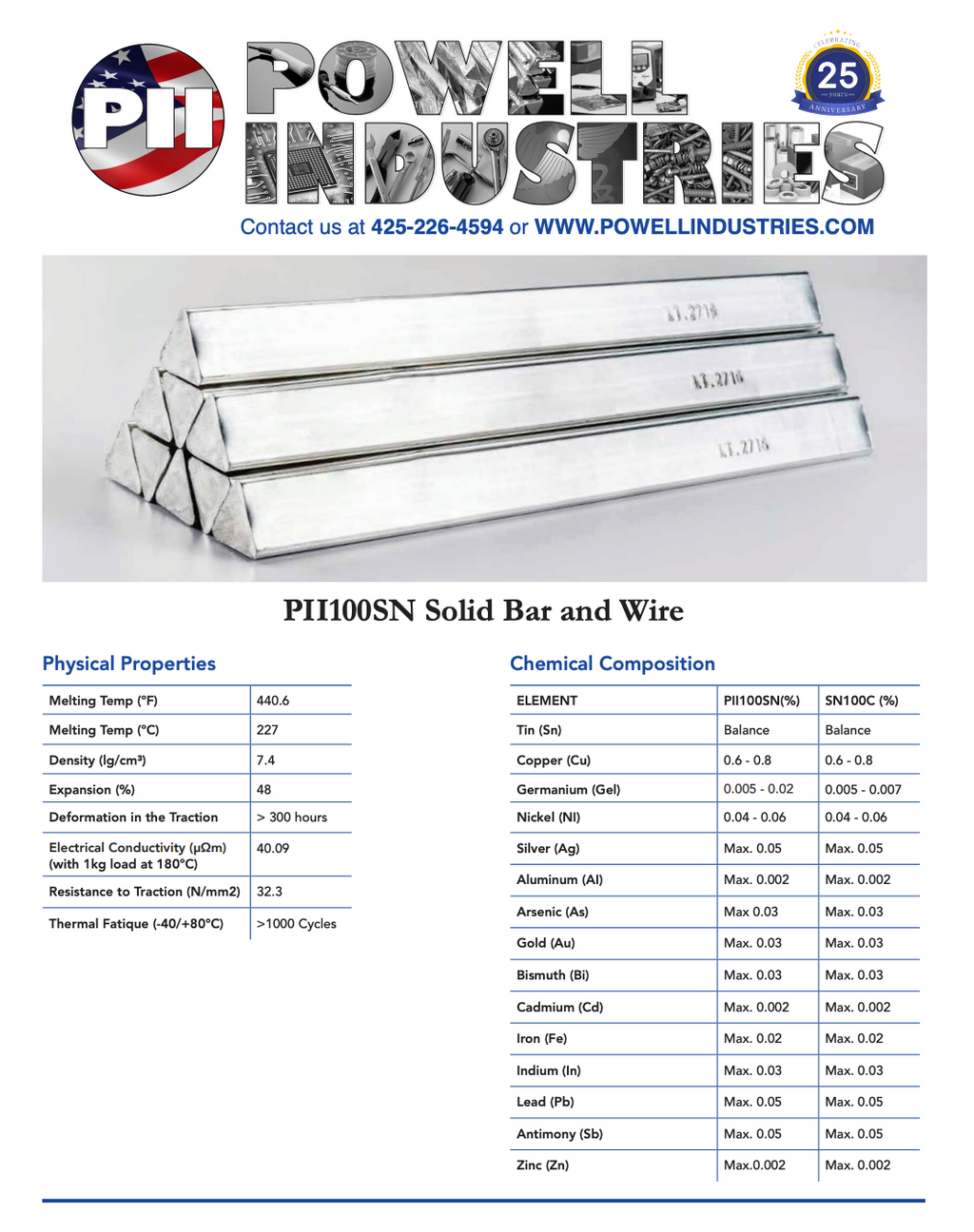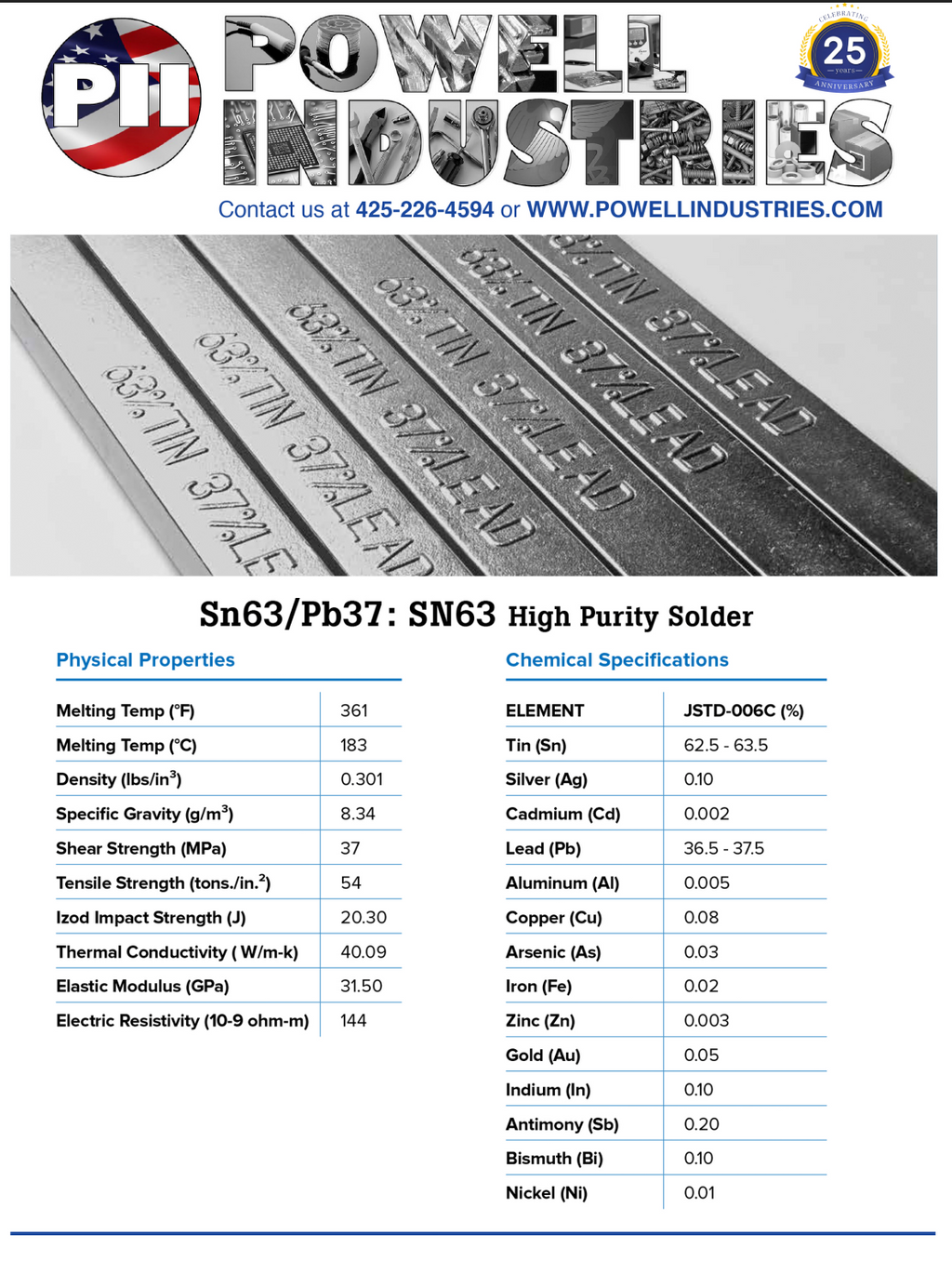 Compete at a higher level with Powell Industries’ Premium Bar Solder. Our Bar solder is made with the UltraPure process that assures the purity of our bar solder meets the requirements of IPC/J-STD-006C.